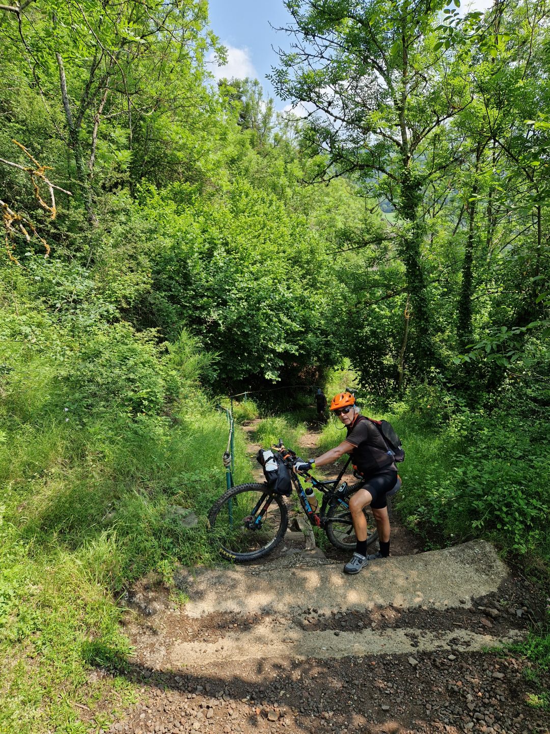 Nous reprenons la trace, beau sentier en balcon pas trop roulant, puis descente pas trop roulante non plus, comme dit Denis dans la vidéo ci-dessous, l’Allier c’est dur à la montée … et à la descente itou.