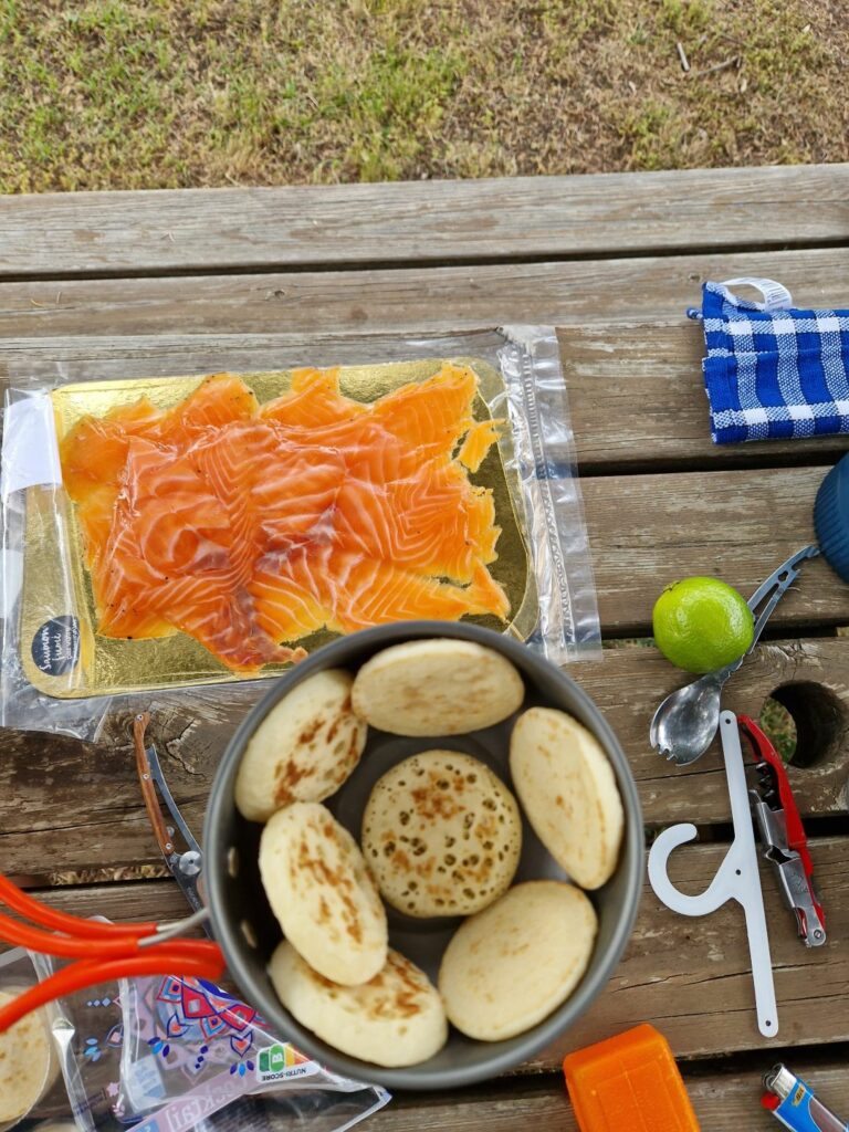 A des années lumière de ce comportement « performance », nous poursuivons gaiement notre festin, les blinis sont grillés à la poêle, le saumon est excellent, tout va bien.