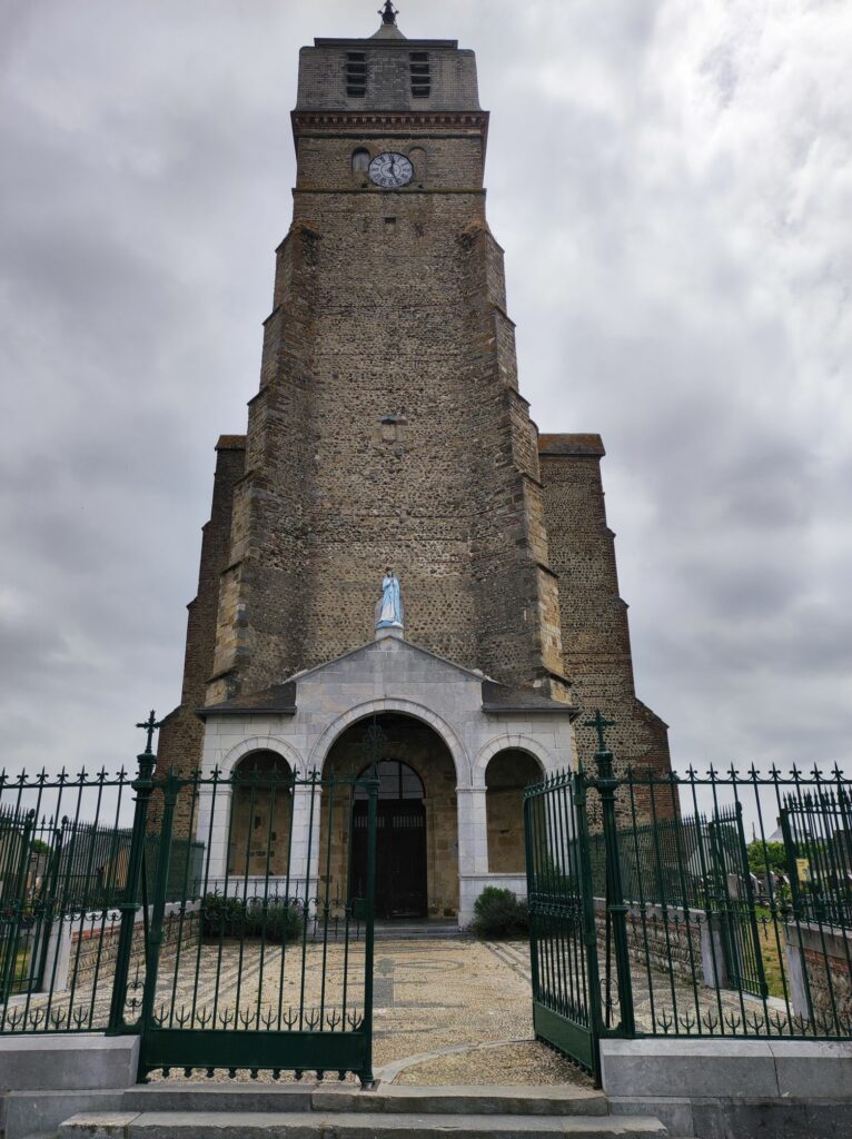 Arrivée à Ibos, église spectaculaire construite en galets, nous achetons le pique-nique et nous nous installons sous une belle halle fraîche et regardons la ballet des électeurs se rendant aux urnes à la mairie voisine.