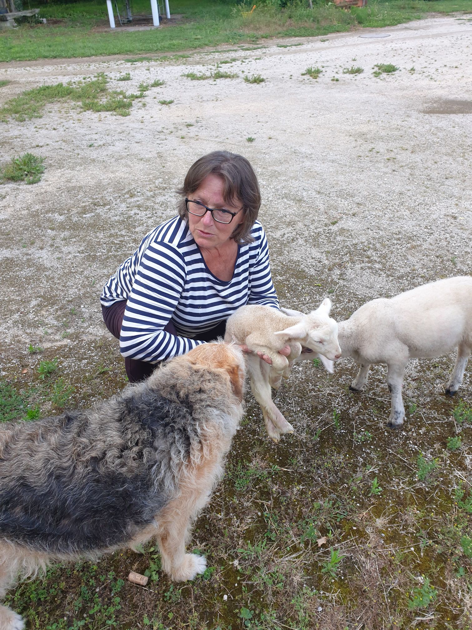 La dame du camping vient nous voir avec un agneau prématuré (il n’a pas encore de dents) dans les bras, elle est obligée de le nourrir au biberon, s’il ne tette pas rapidement il va mourir car son estomac doit se former au lait sous quelques jours.